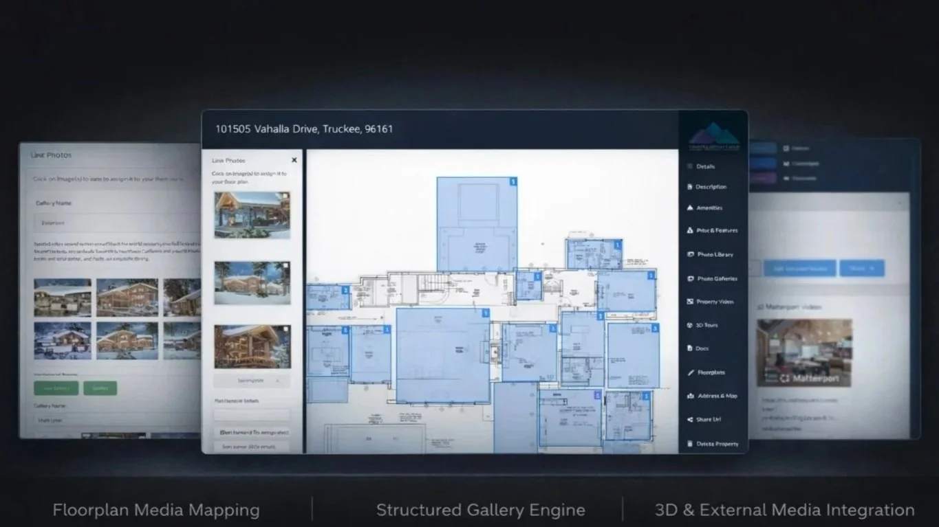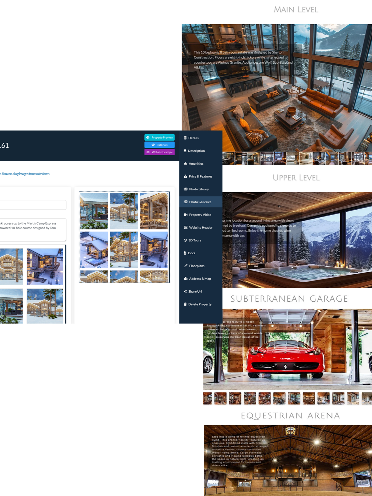RE Property CMS implements a titled, narrative-based gallery architecture that structures media into defined, deployable sections.